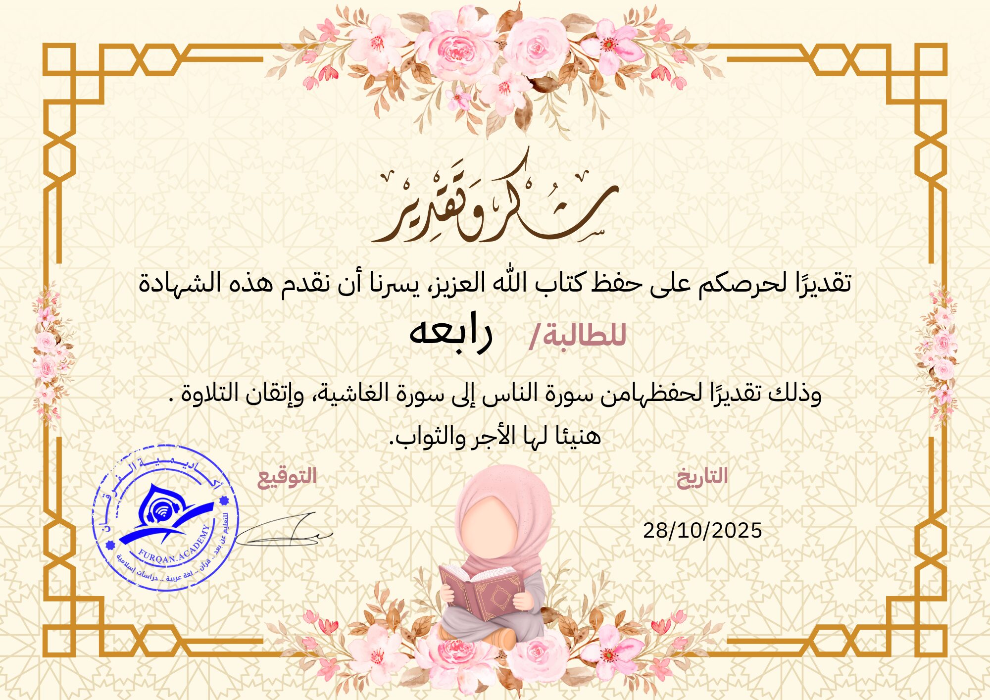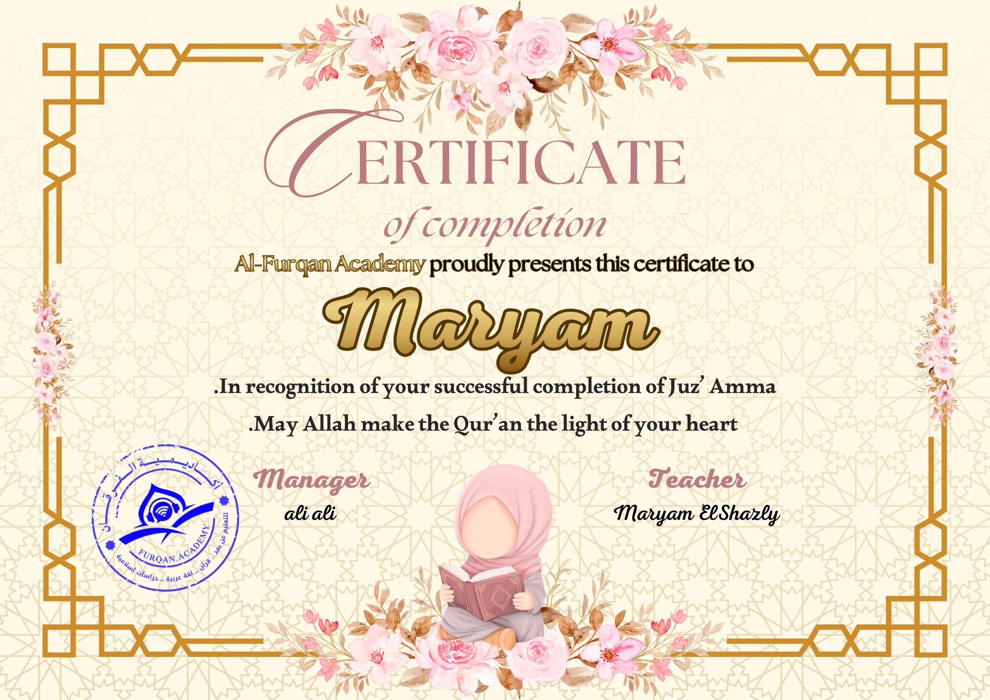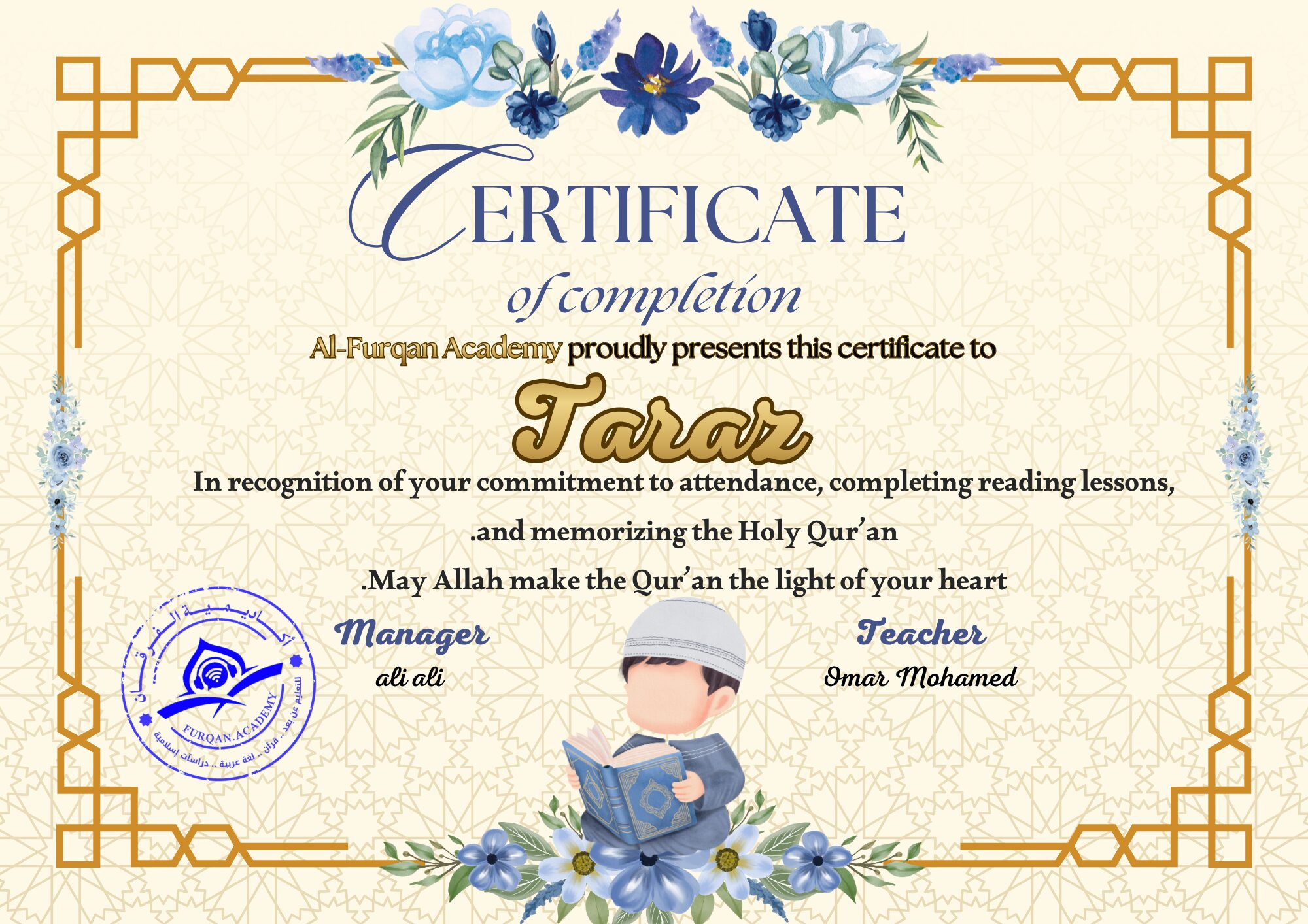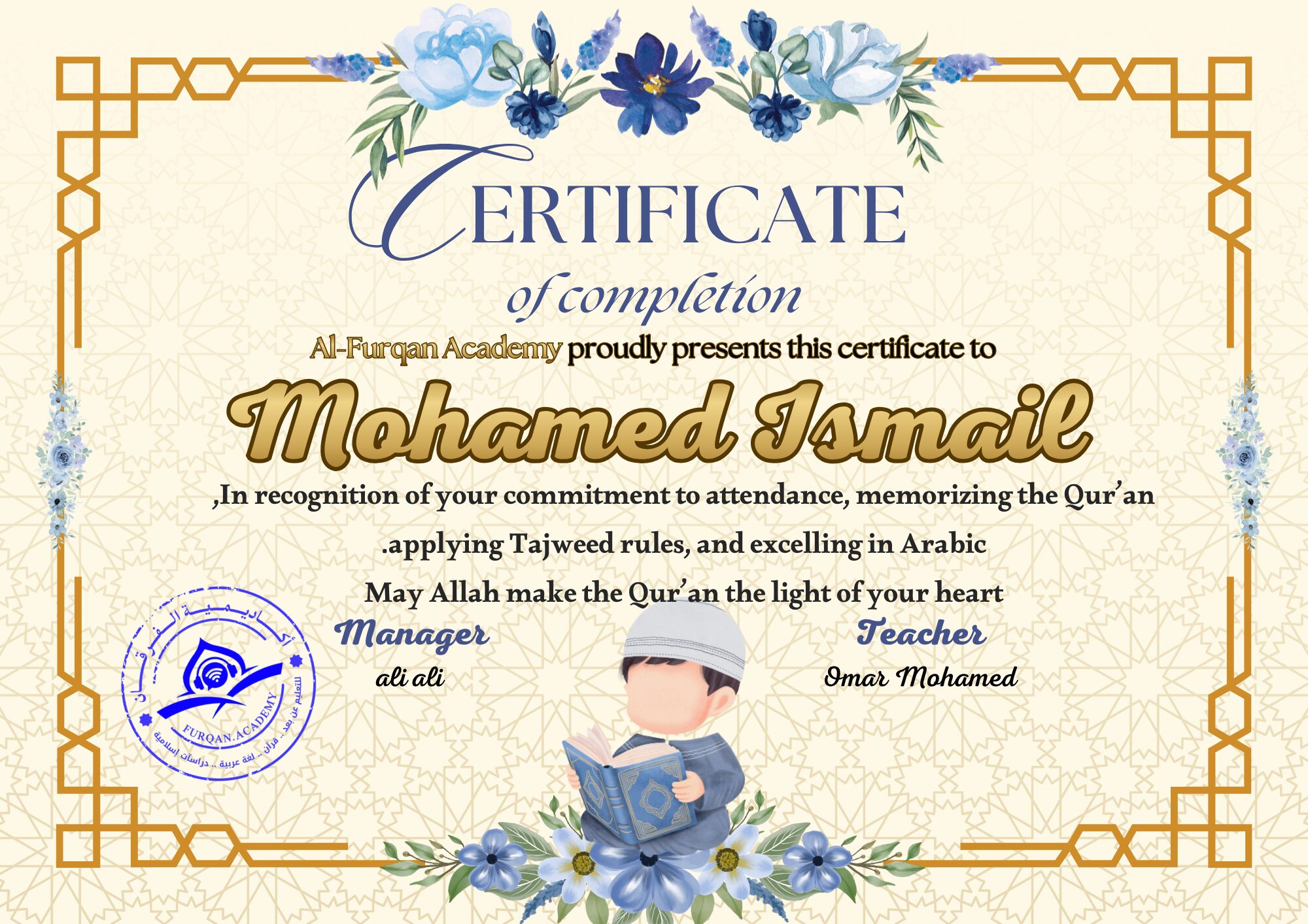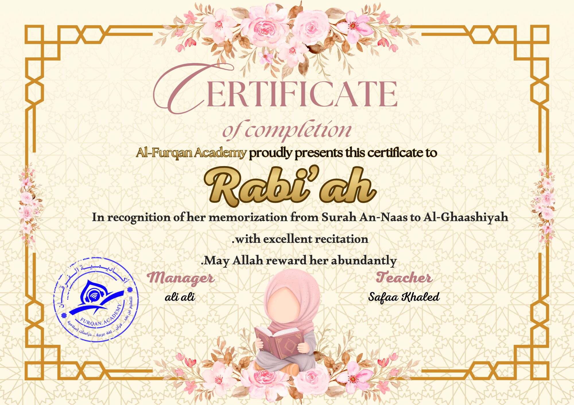 I’ve been finishing Quran classes at Furqan Academy for a few years now. The courses are of exceptional caliber. I wish to stay with them for as long as I can and to motivate others to learn the Quran online and enjoy the simplicity of learning Allah’s book with Allah Almighty’s guidance.
